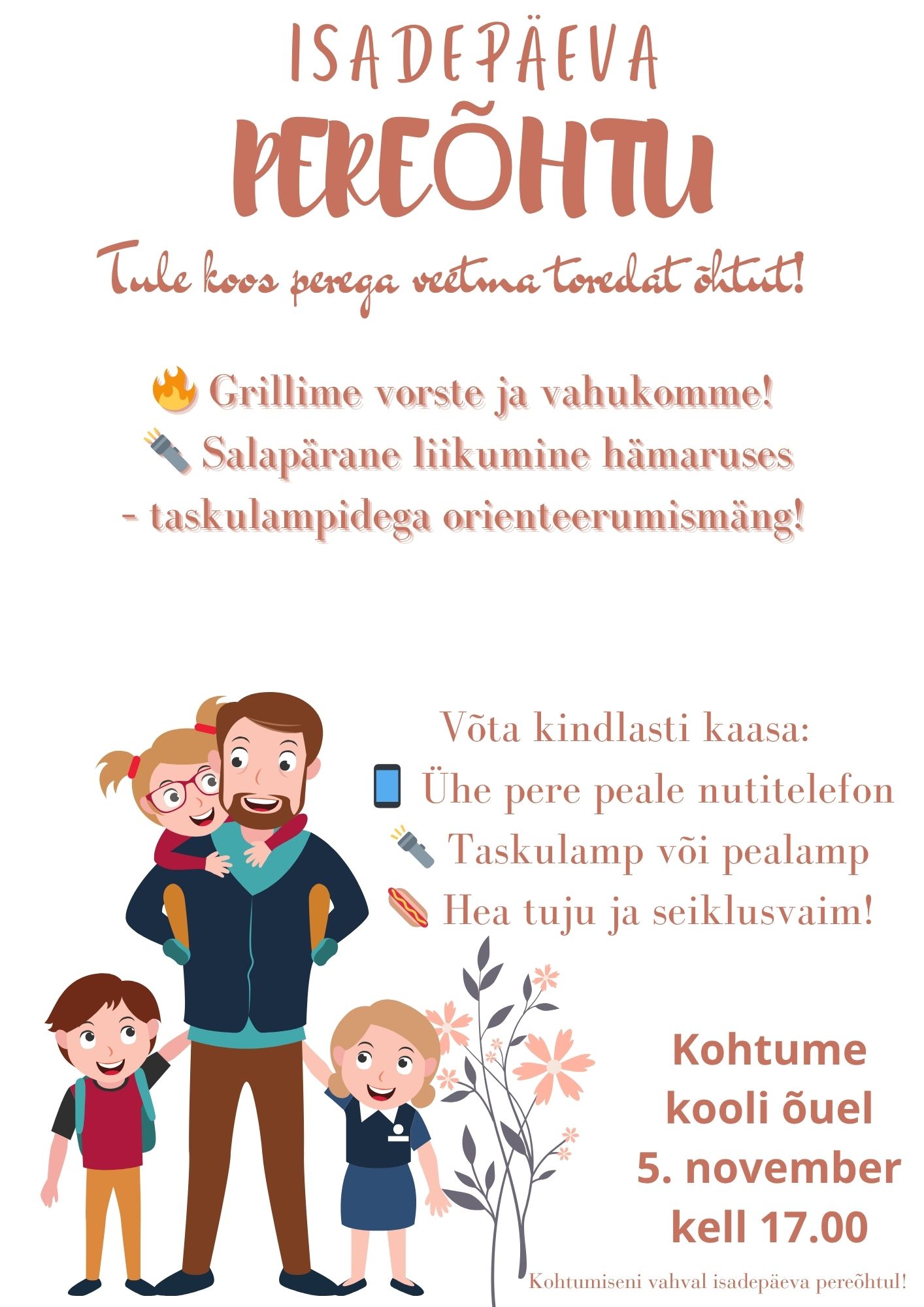 Ootame kõiki peresid 5. novembril kell 17.00 kooli õuele, et veeta üheskoos meeleolukas isadepäeva õhtu!