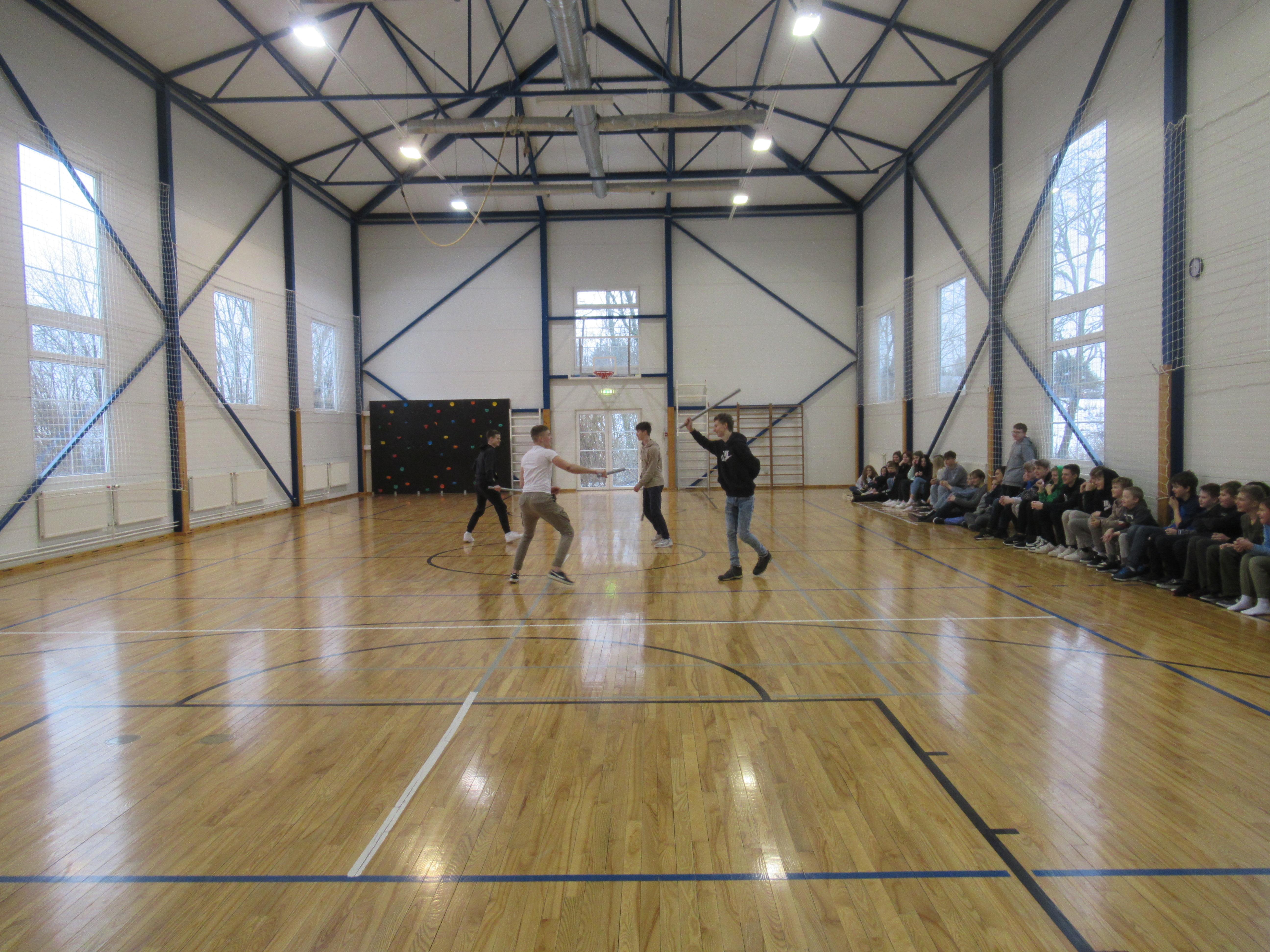 Juba eelneval nädalal pandi meie kooli üles põnev Mõõgavendade näitus, kus kajastatakse nende tegemisi läbi aastate. On väga tore, et lisaks näitusele said nad ka ise meile külla tulla. Meie õpilastele näidati, millised on nende „mõõgad“ ja kuidas nad viivad läbi mõõgavõitlust. Igal võitlusel on alati ka reeglid. See oli esimene asi, mis tuli osalejatel meelde jätta. Edasi asuti võitlusvõtete juurde. Kõik soovijad said neid proovida. Elevus täitis terve saali.