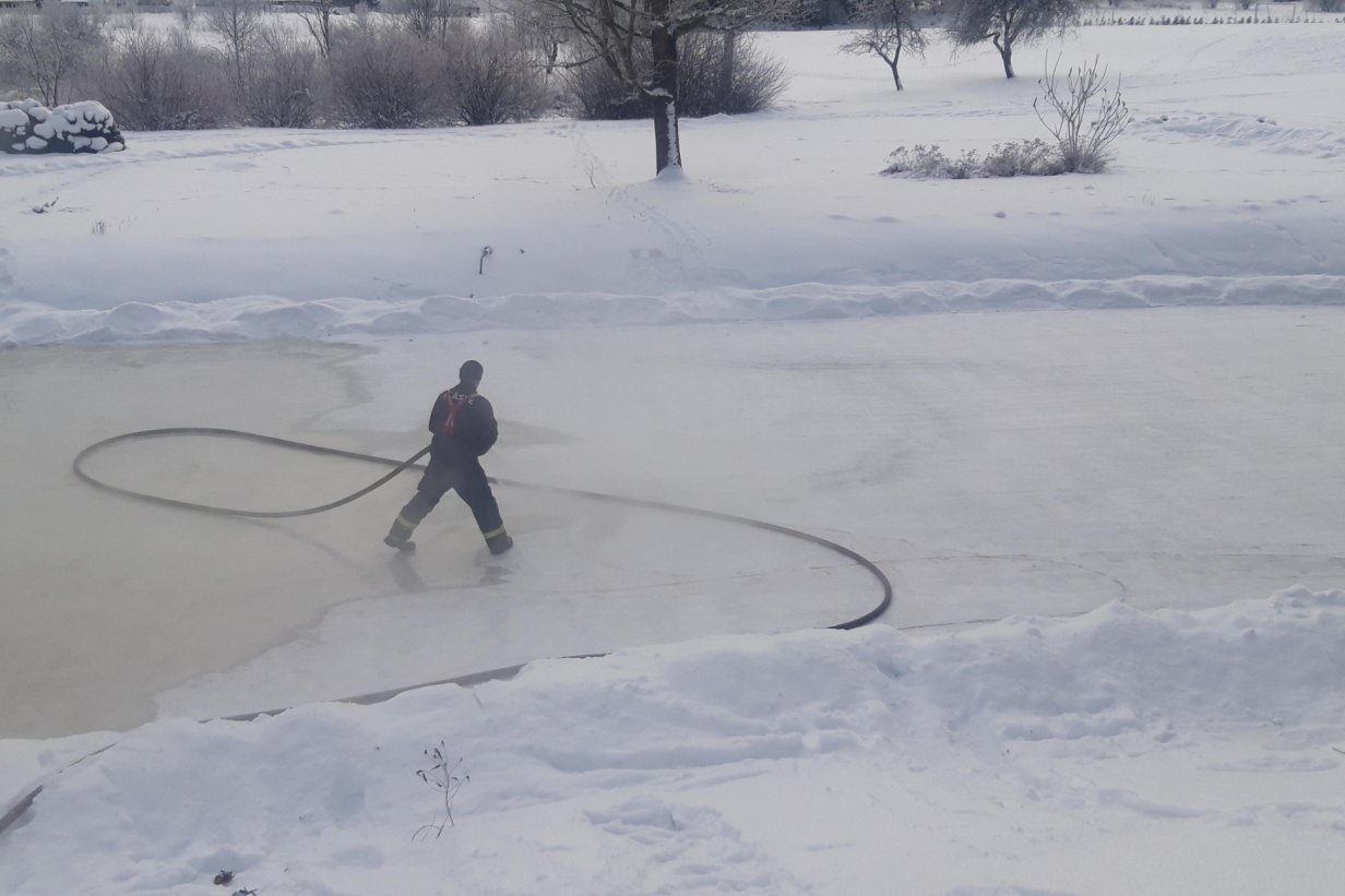 Reedel võis näha tuletõrjeautot kooli tiigi juures askeldama. Ei, põhjuseks ei olnud õnnetus. Päästeameti Mustla komando oli hoopis appi tulnud Holstre uisuväljaku rajamisele.