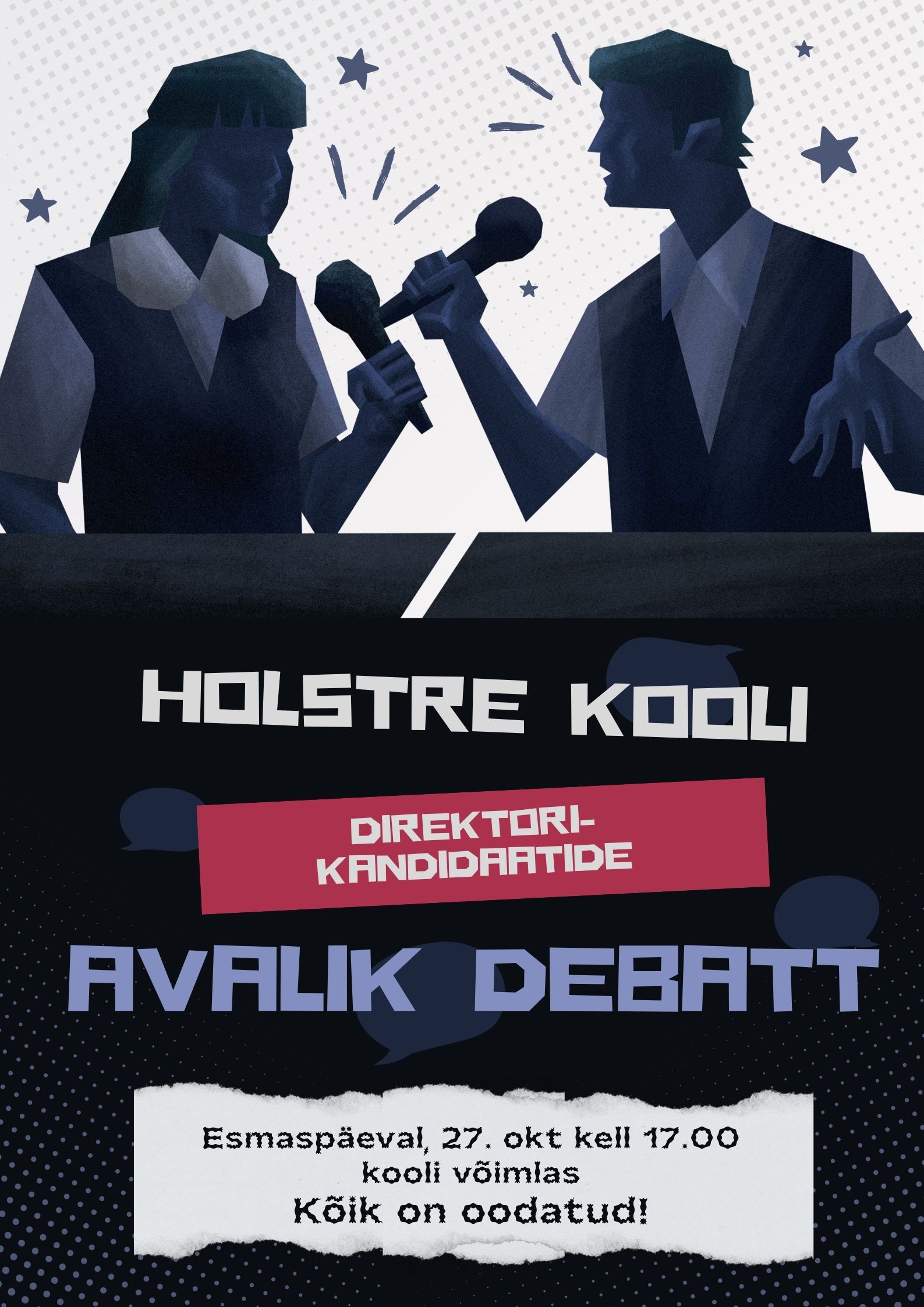 Holstre Kooli direktorikandidaatide avalik debatt toimub koolimaja võimlas 27.10 kell 17!